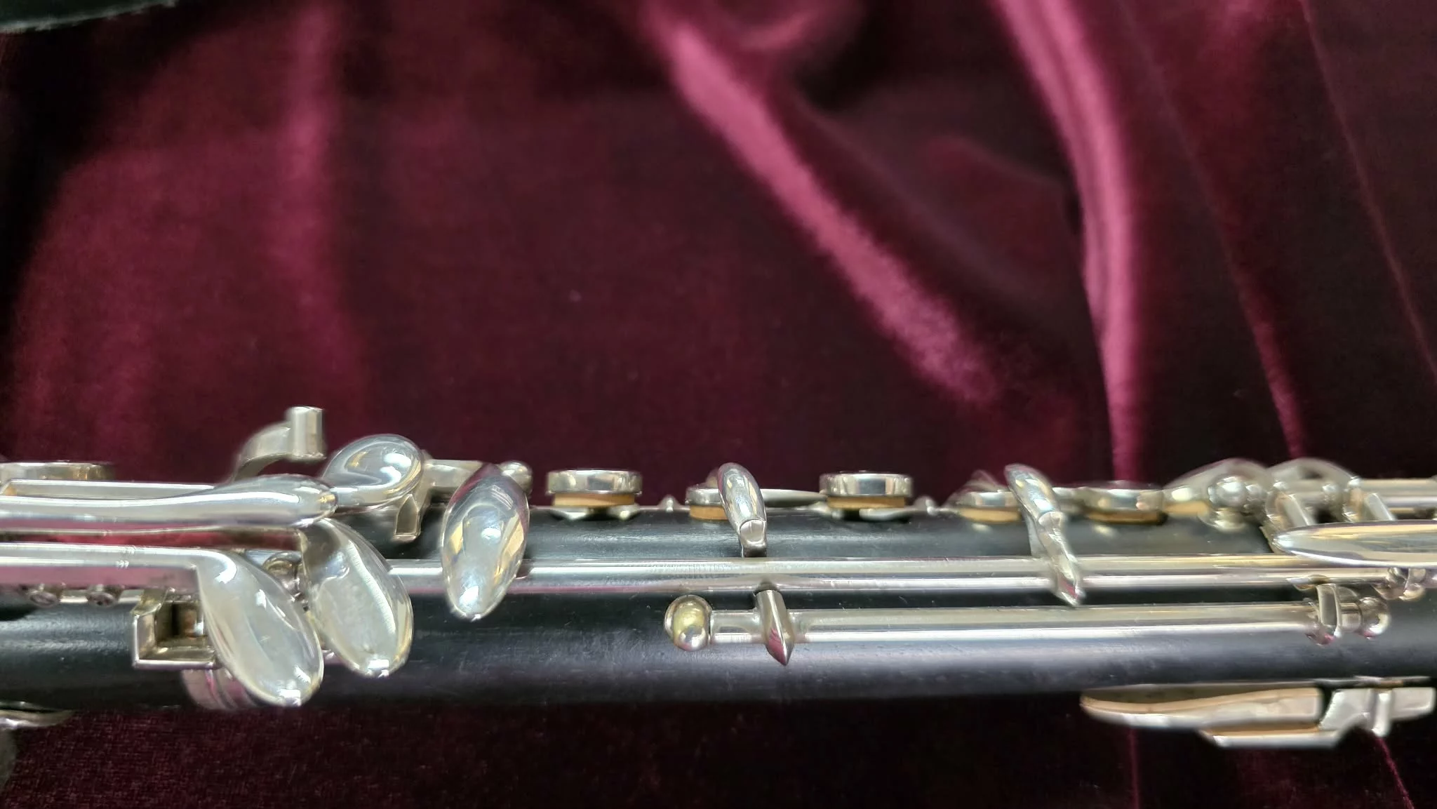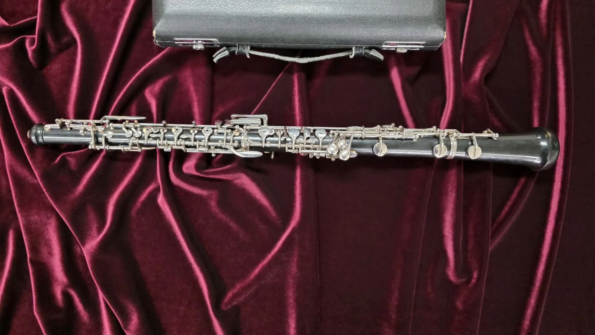 Buffet 4052 wooden oboe fully serviced at GV Brass & Woodwind Repairs. Semi-automantic, luracast lined bore to prevent the wood from cracking, silver plating keywork. Great beginner to intermediate oboe.