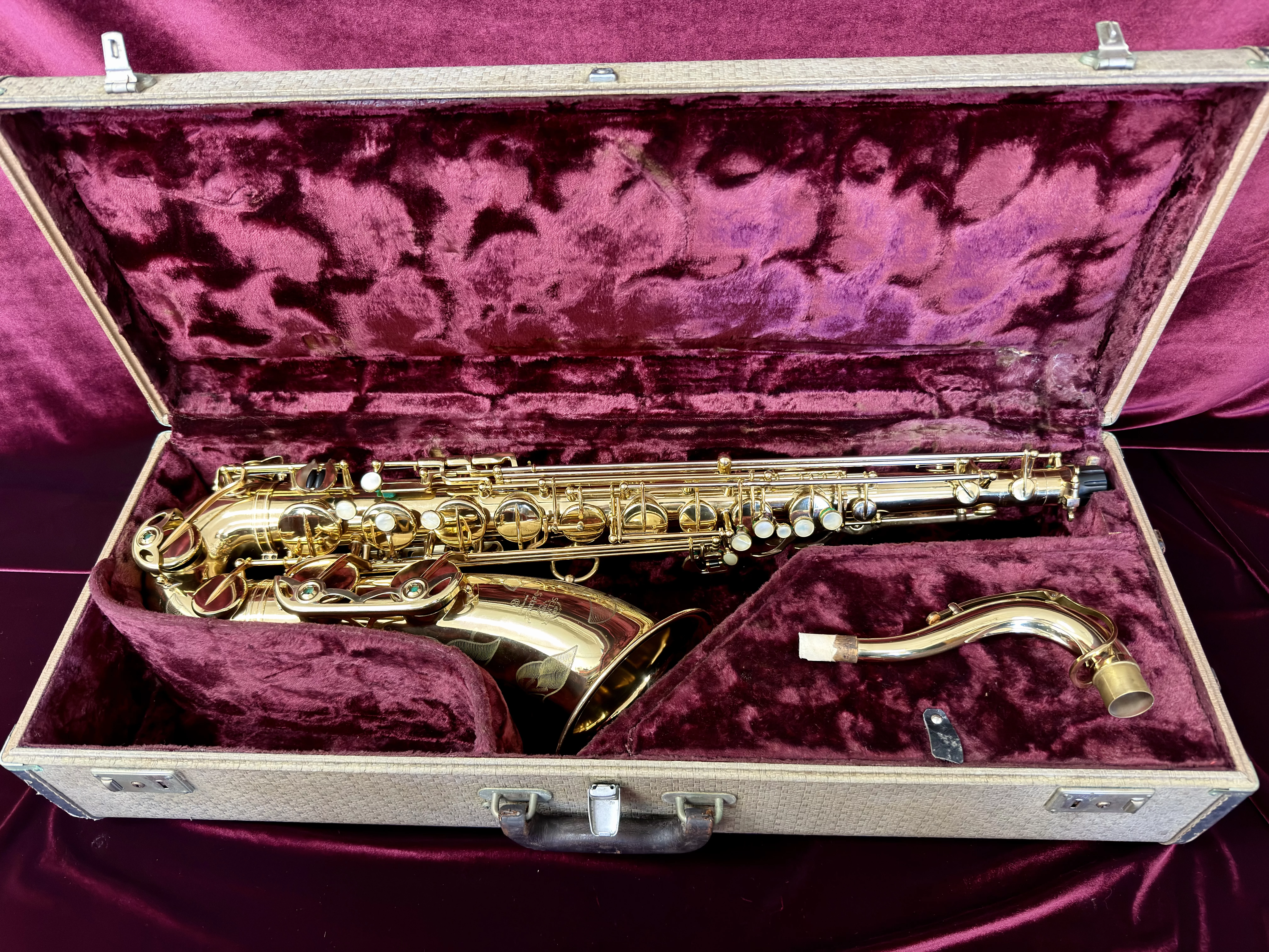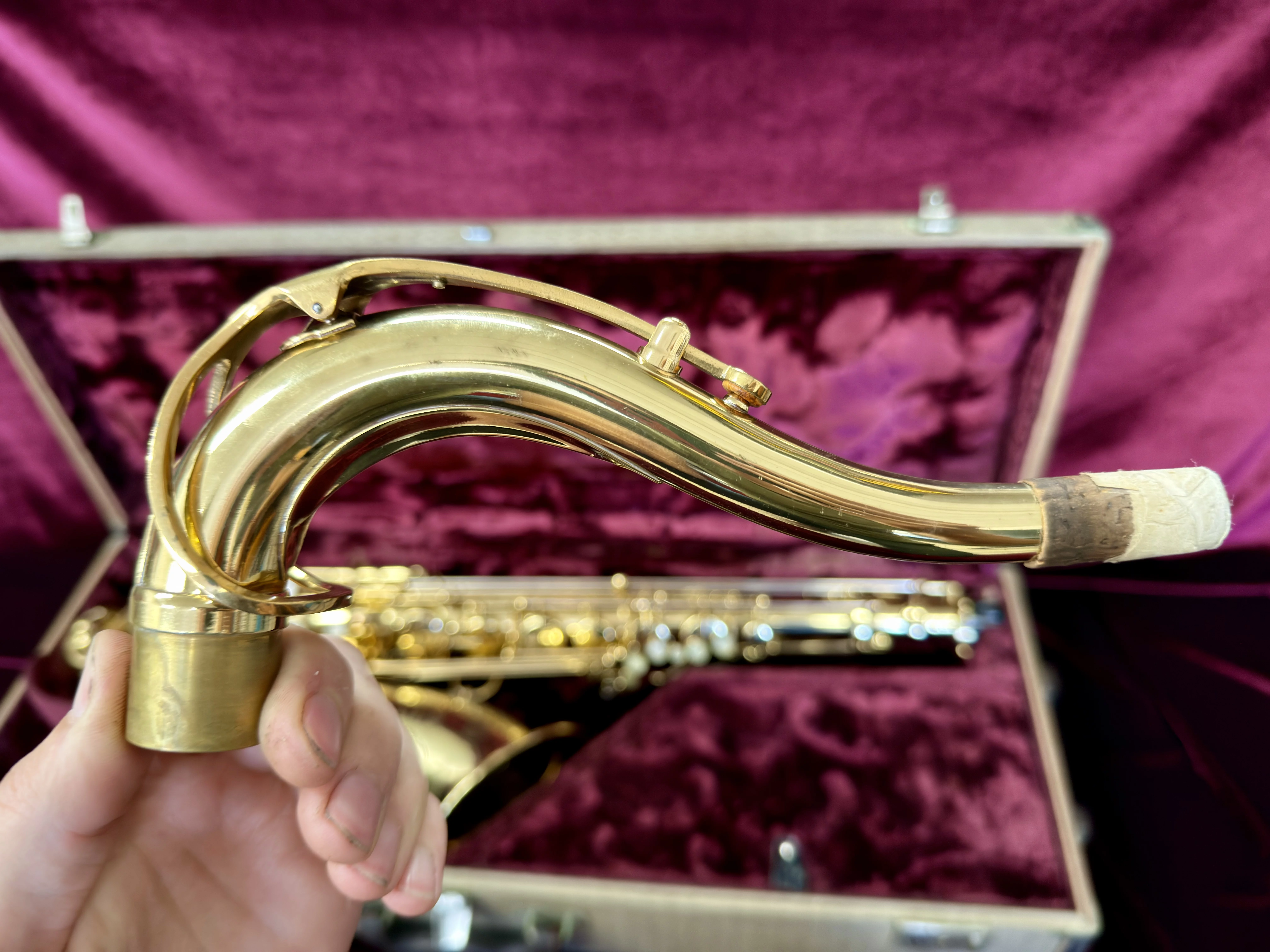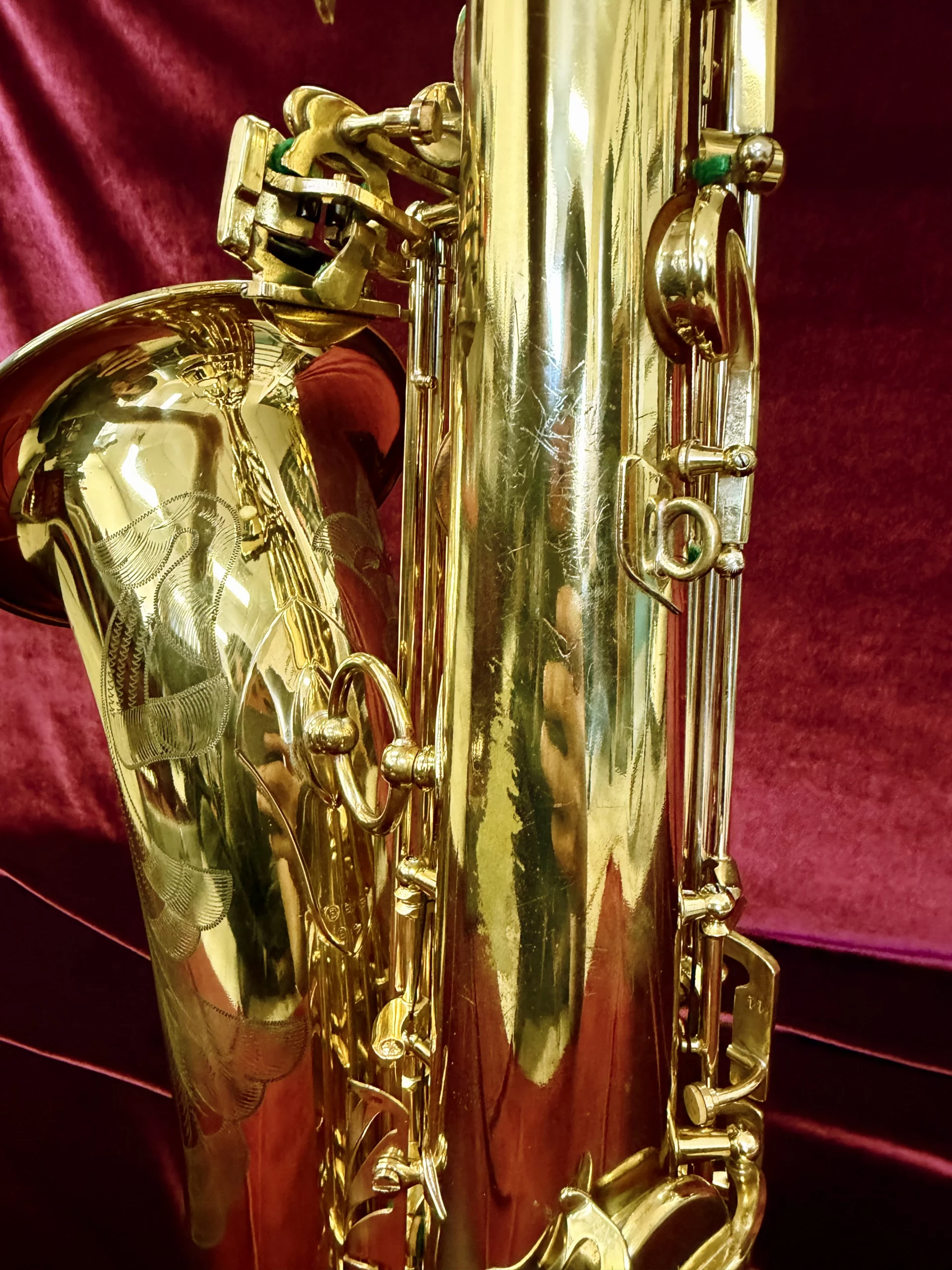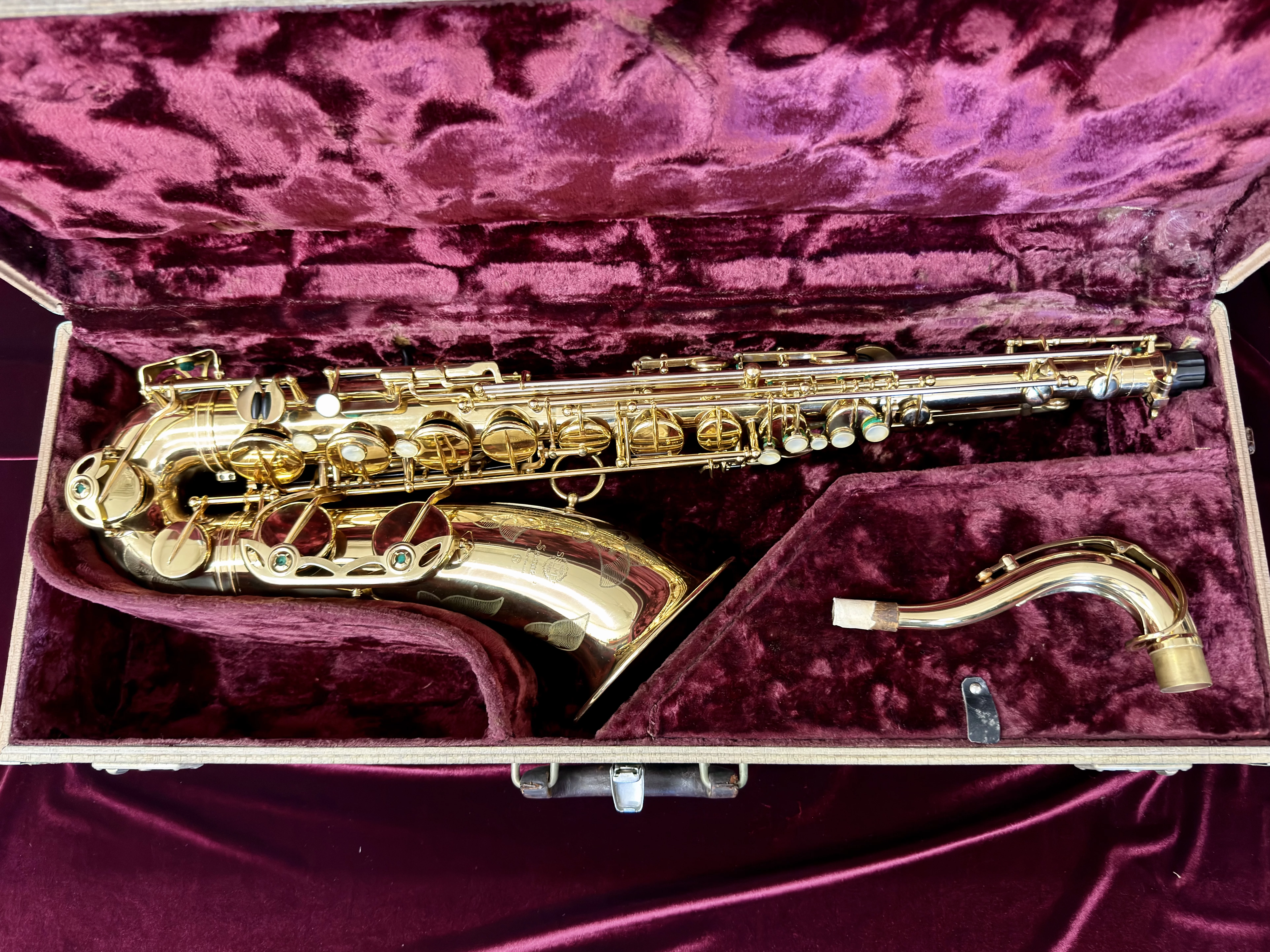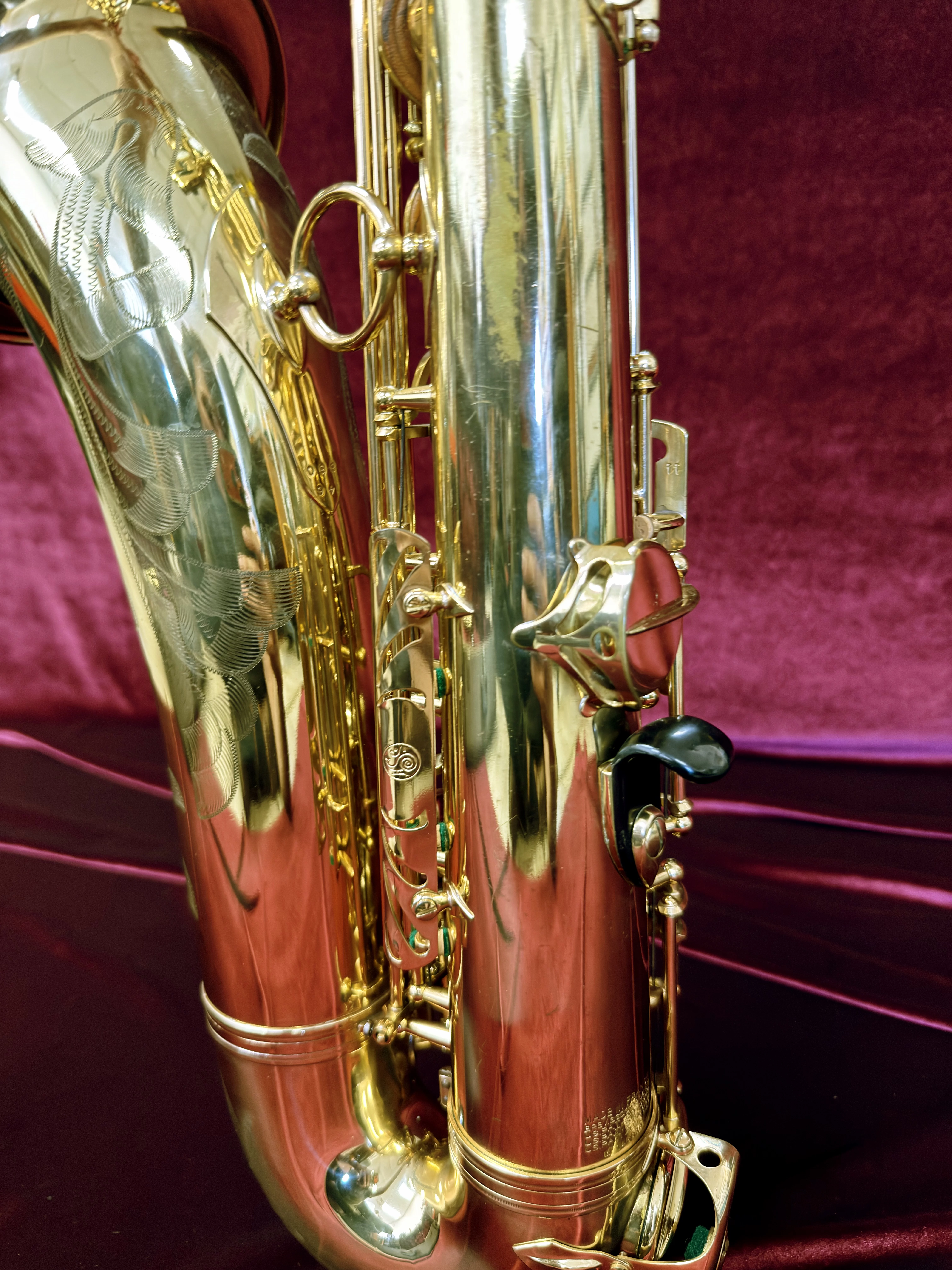 Incredible all original 146xxx Selmer Mark Vi tenor. This closet queen features all original pads, corks and felts, as well as near perfect original lacquer. The sharpness of the engraving is really stunning and must be seen in person to appreciate fully. Horn is sealing and playing great considering the age of the pads. Would suit a collector looking for the best condition tenor around or a professional player wanting an incredible horn. Sax is sold as is and would ideally need to be fully overhauled to be played professionally which we can accommodate for a competitive price with purchase if requested.