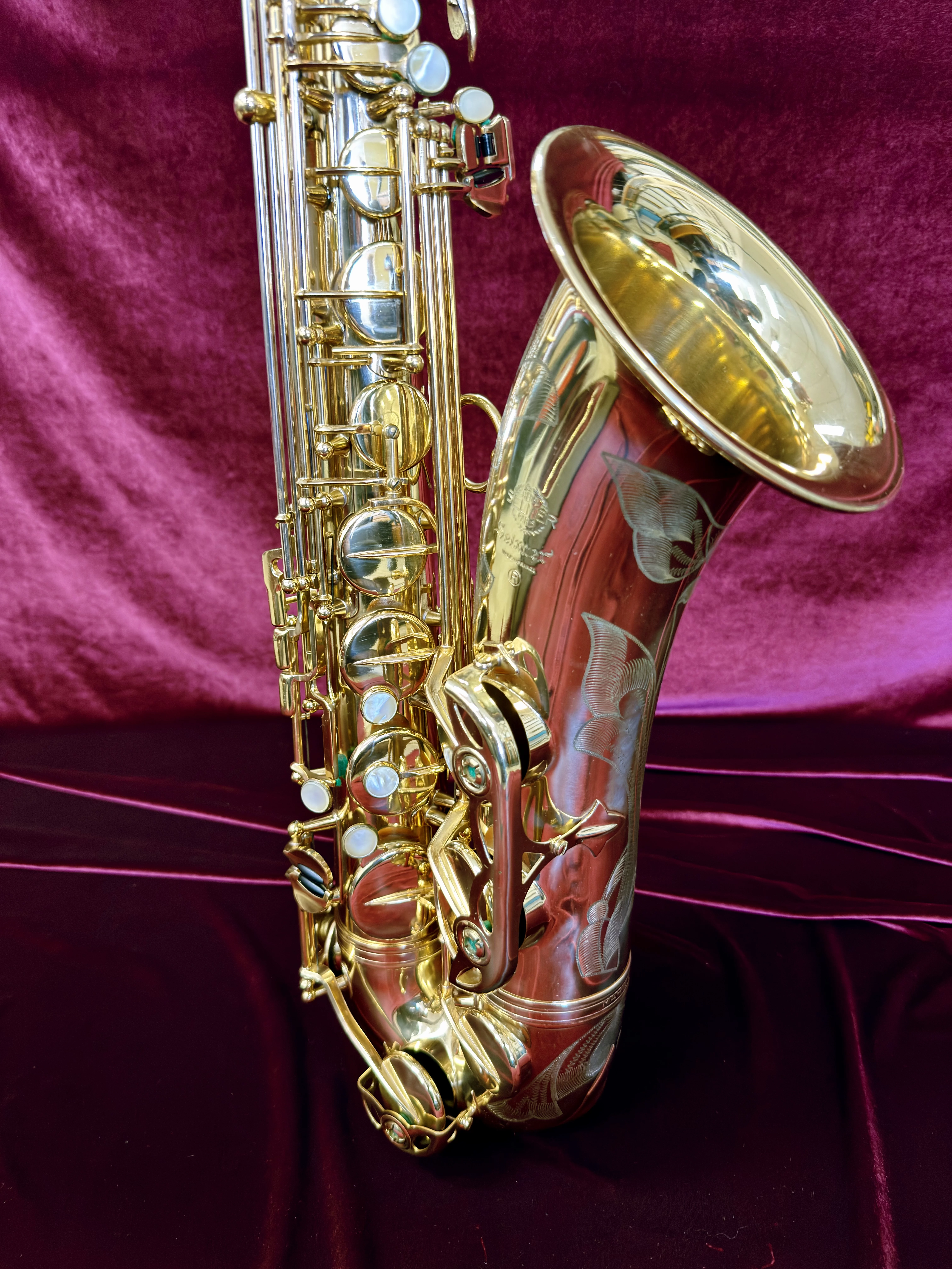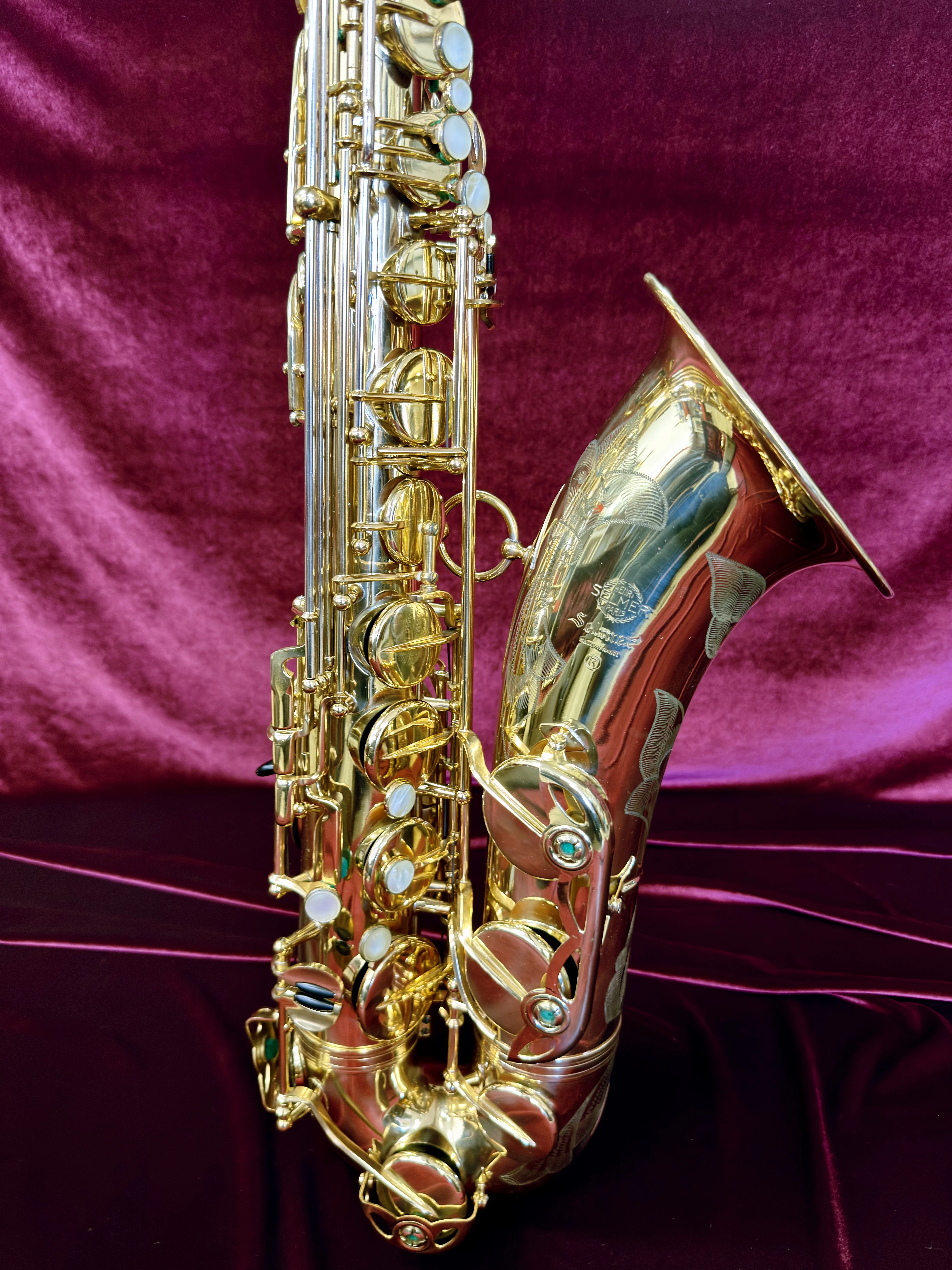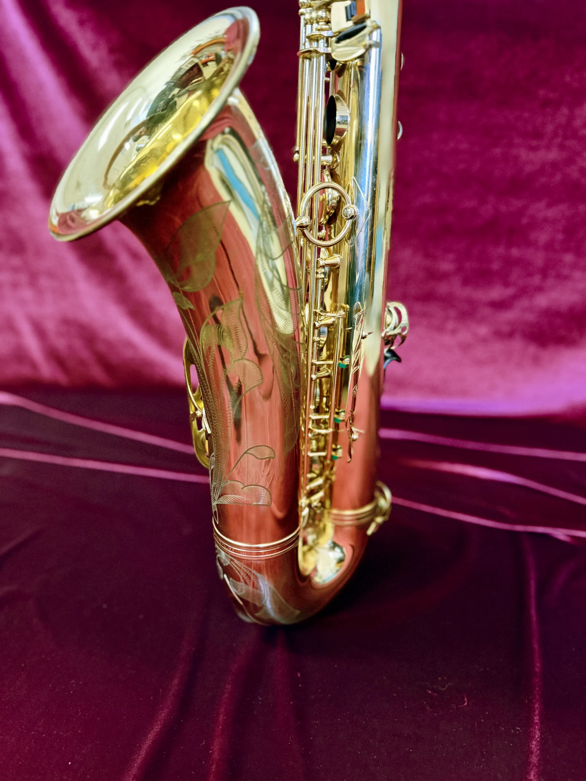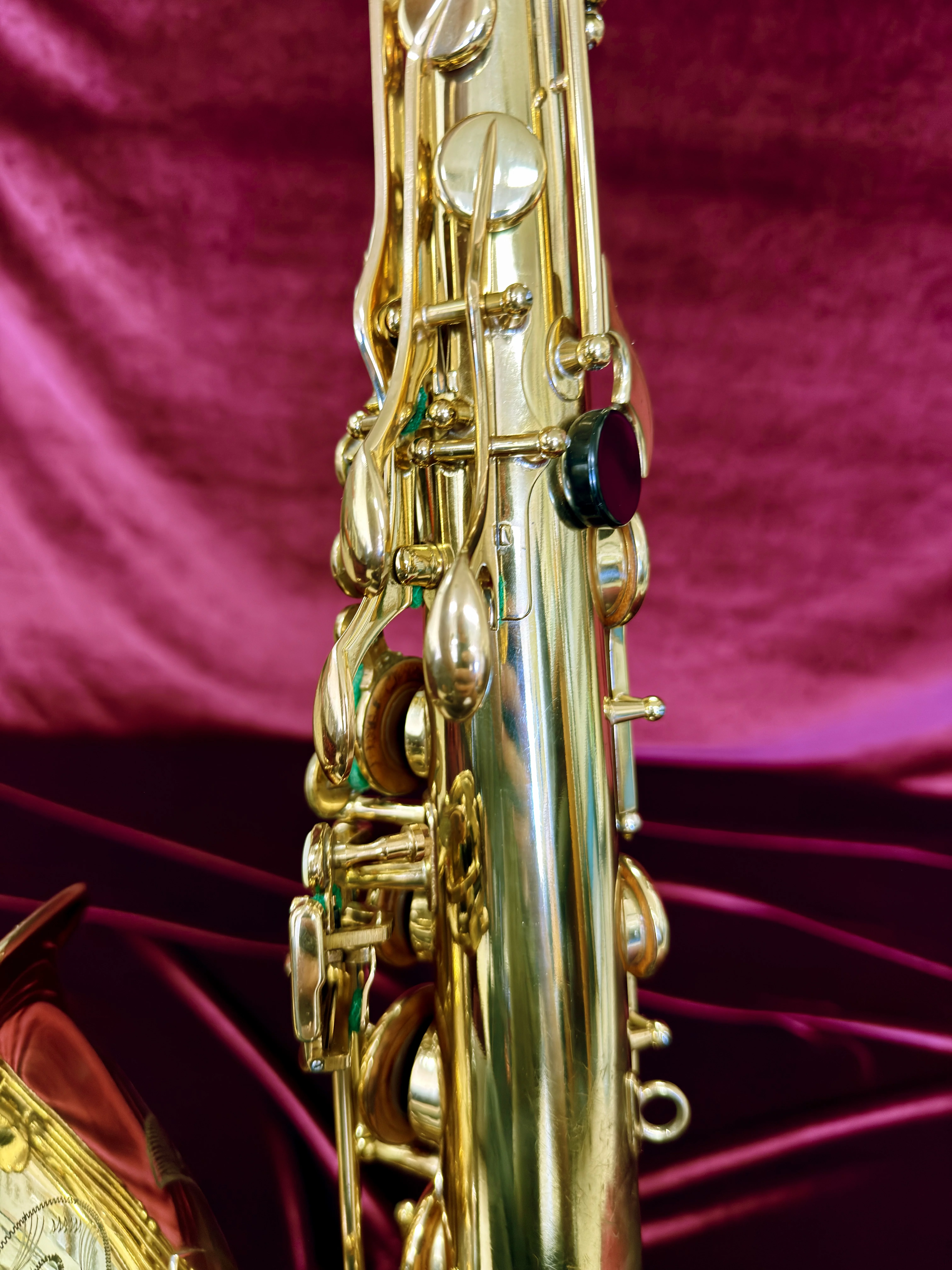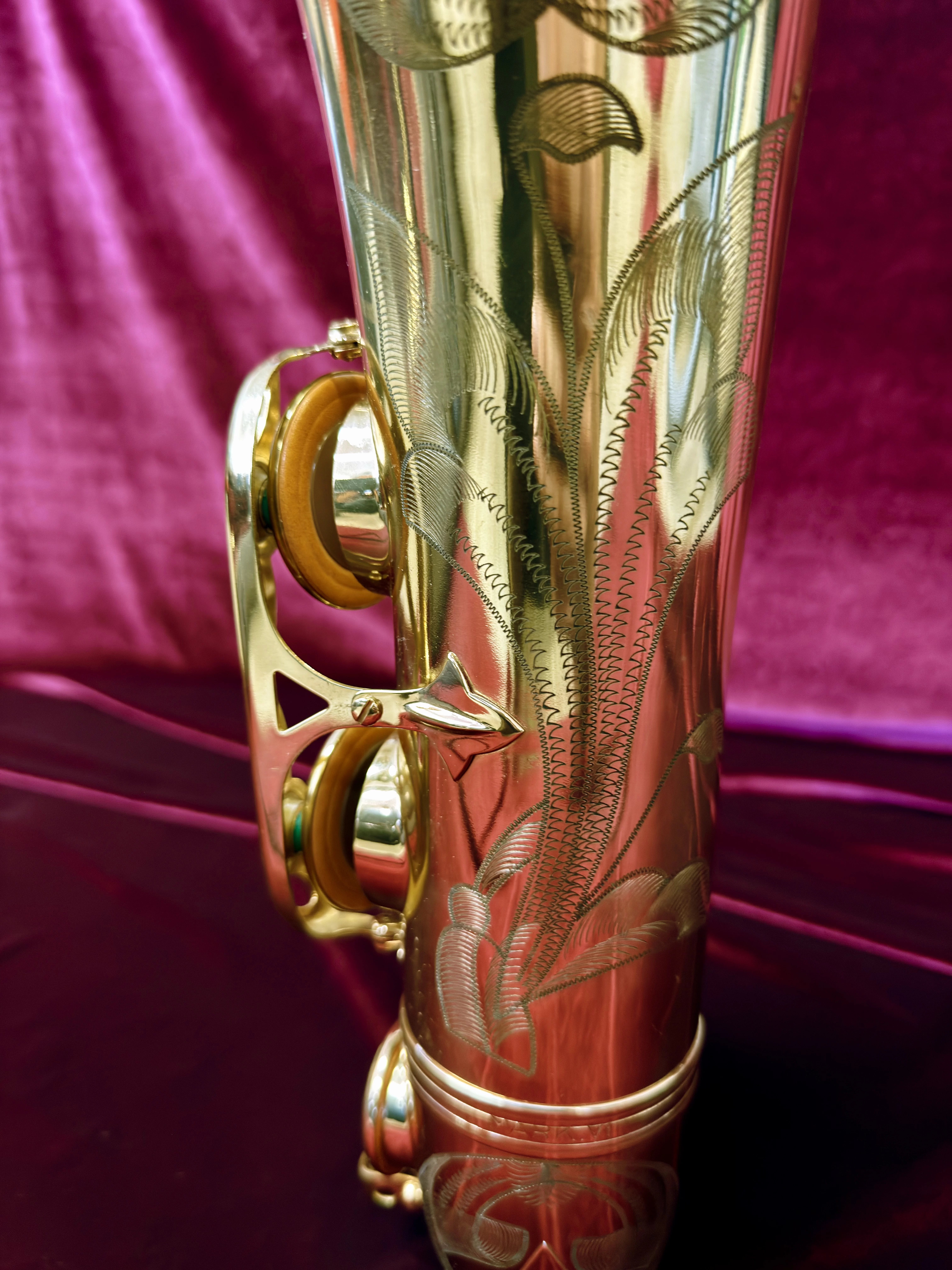 Incredible all original 146xxx Selmer Mark Vi tenor. This closet queen features all original pads, corks and felts, as well as near perfect original lacquer. The sharpness of the engraving is really stunning and must be seen in person to appreciate fully. Horn is sealing and playing great considering the age of the pads. Would suit a collector looking for the best condition tenor around or a professional player wanting an incredible horn. Sax is sold as is and would ideally need to be fully overhauled to be played professionally which we can accommodate for a competitive price with purchase if requested.