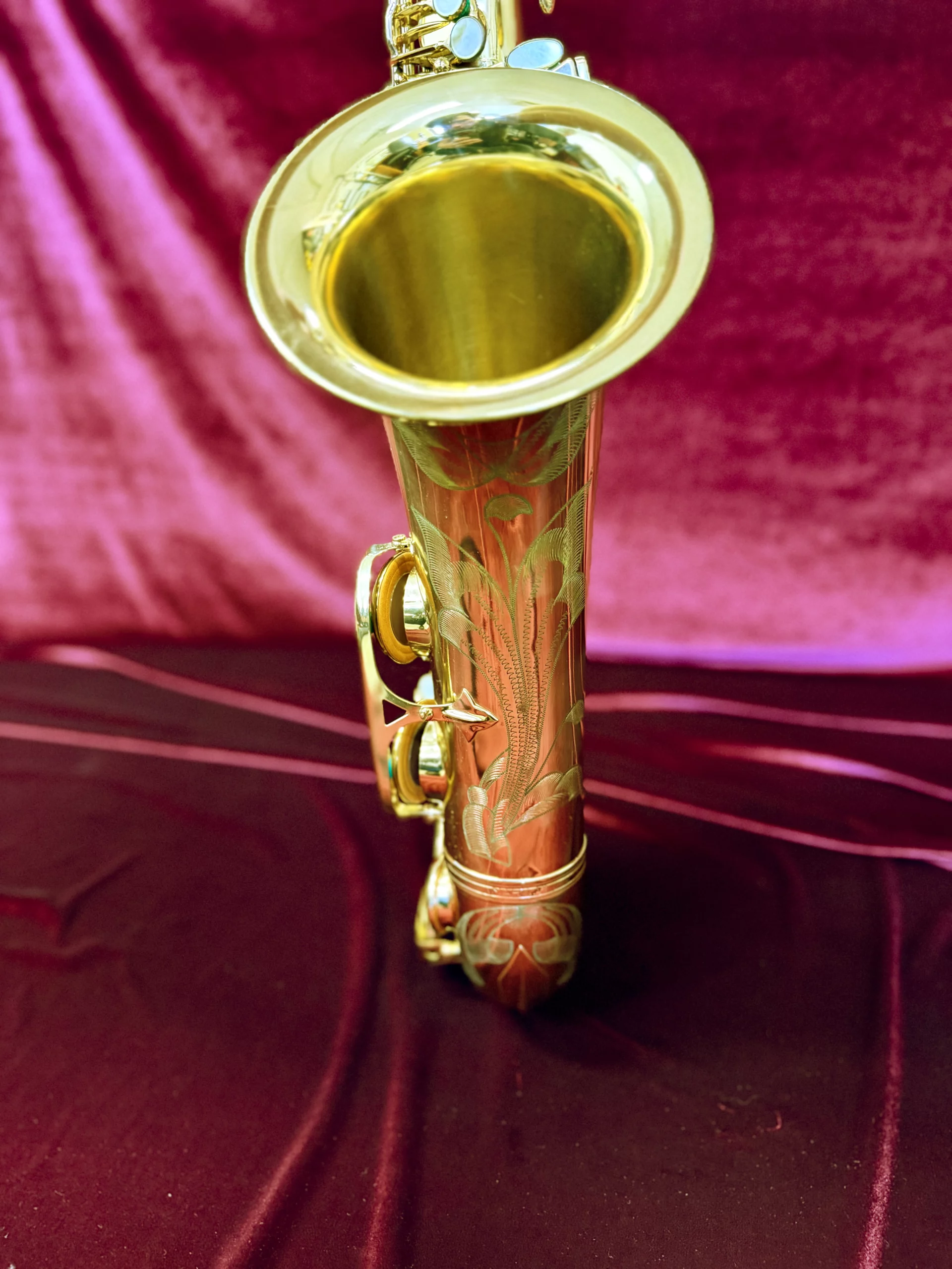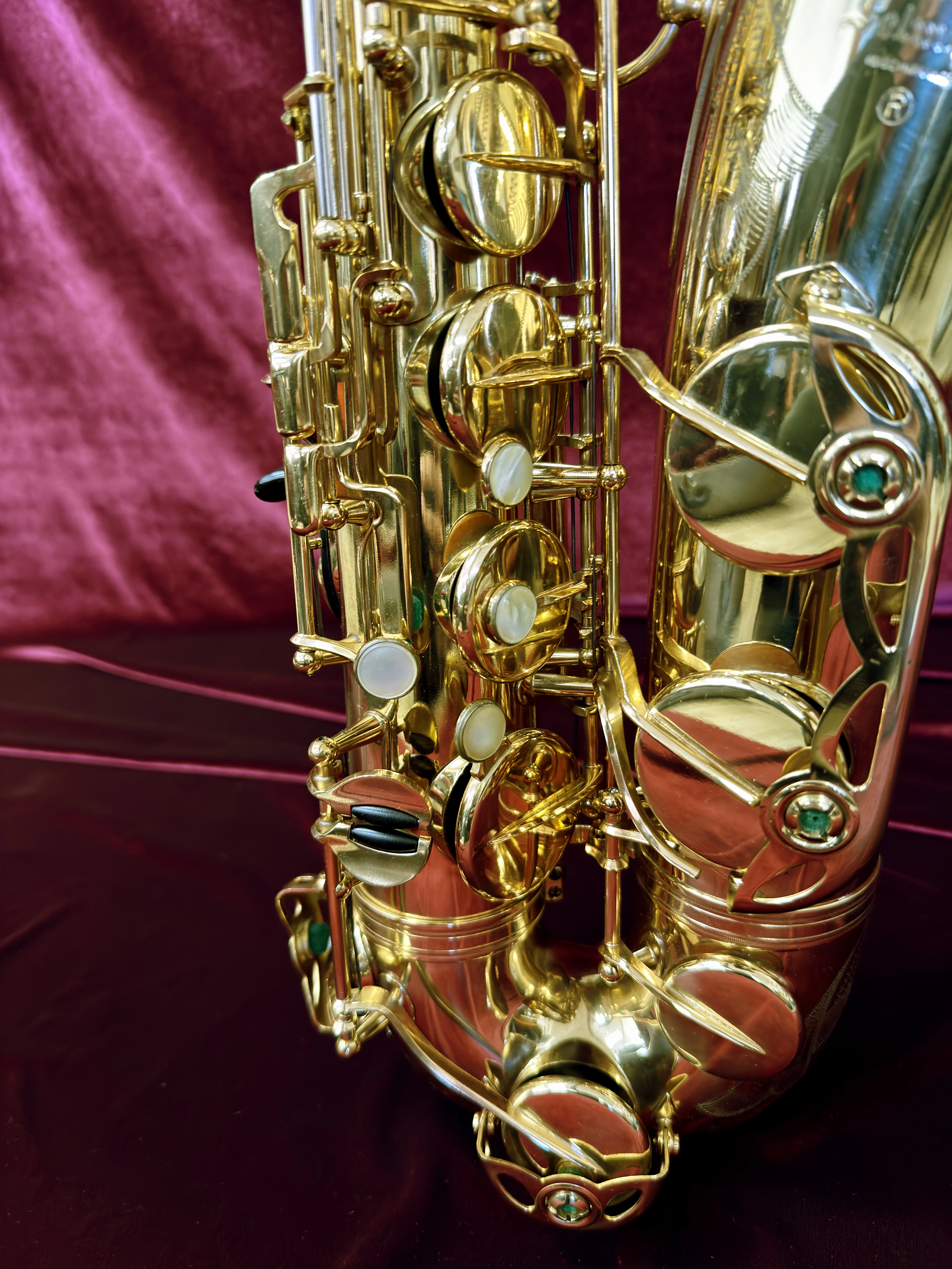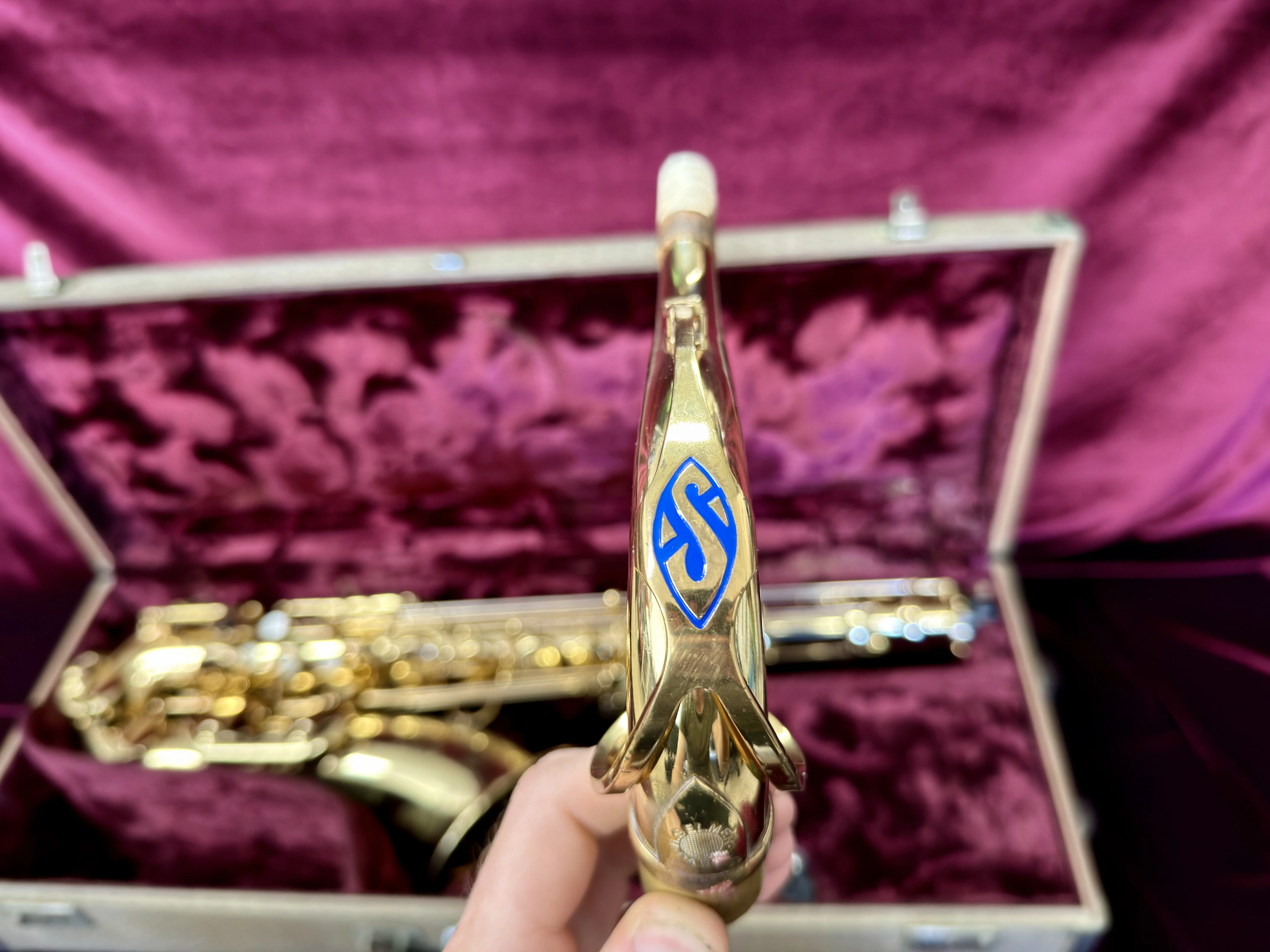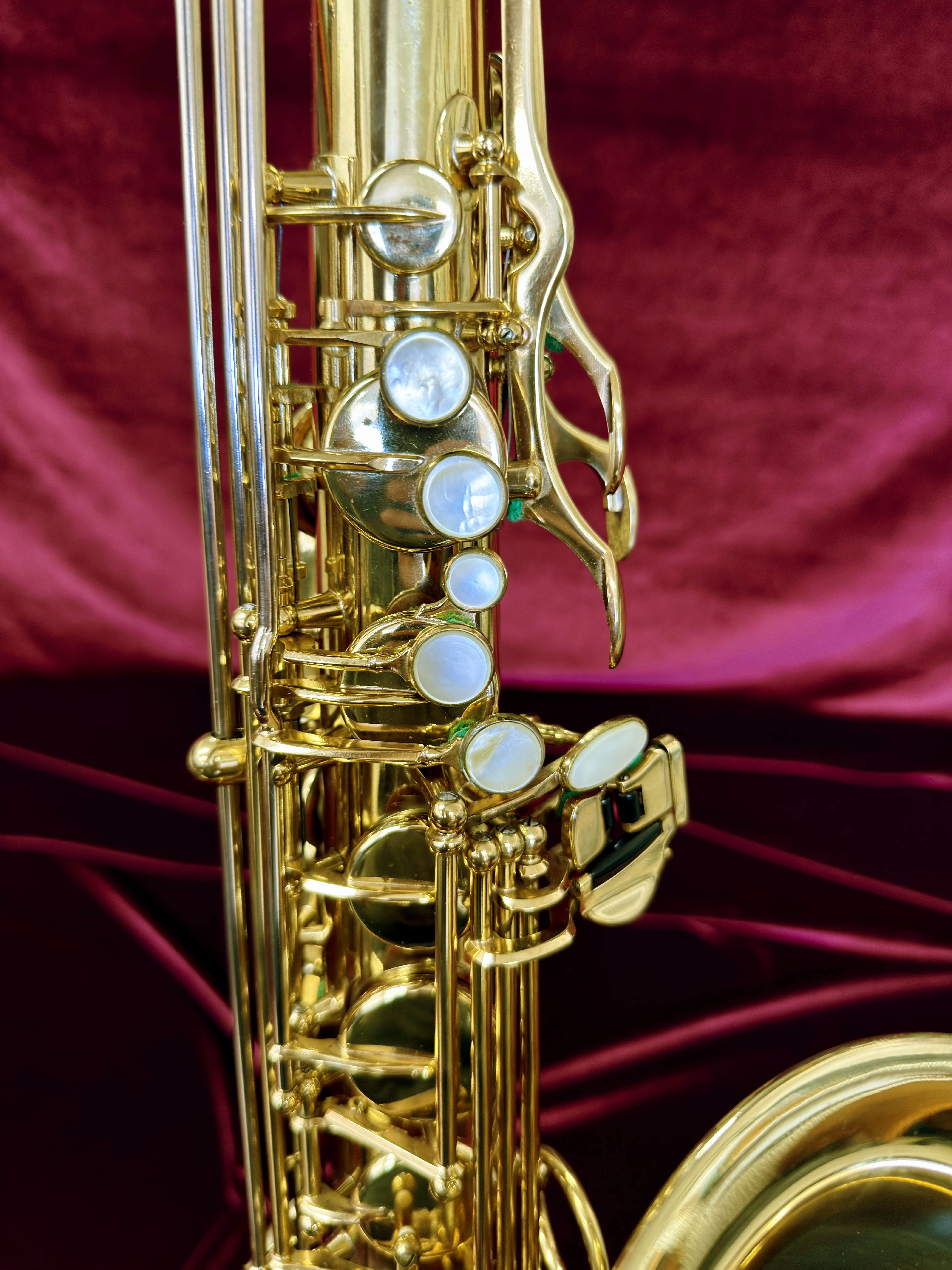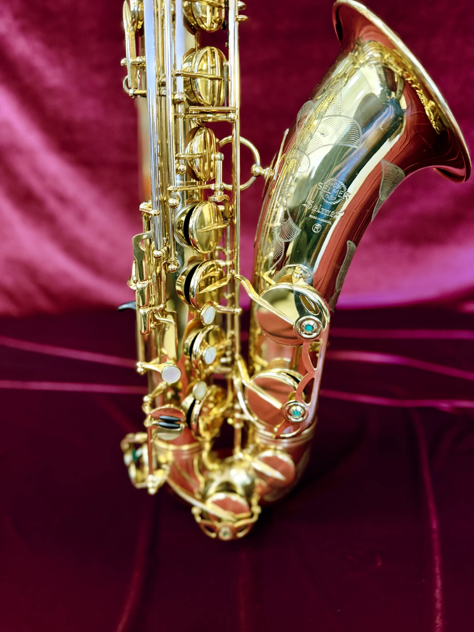 Incredible all original 146xxx Selmer Mark Vi tenor. This closet queen features all original pads, corks and felts, as well as near perfect original lacquer. The sharpness of the engraving is really stunning and must be seen in person to appreciate fully. Horn is sealing and playing great considering the age of the pads. Would suit a collector looking for the best condition tenor around or a professional player wanting an incredible horn. Sax is sold as is and would ideally need to be fully overhauled to be played professionally which we can accommodate for a competitive price with purchase if requested.